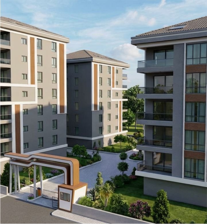 Geniş peyzaj alanları ve çocuk oyun parklarıyla aile yaşamına uygun modern site kompleksi.